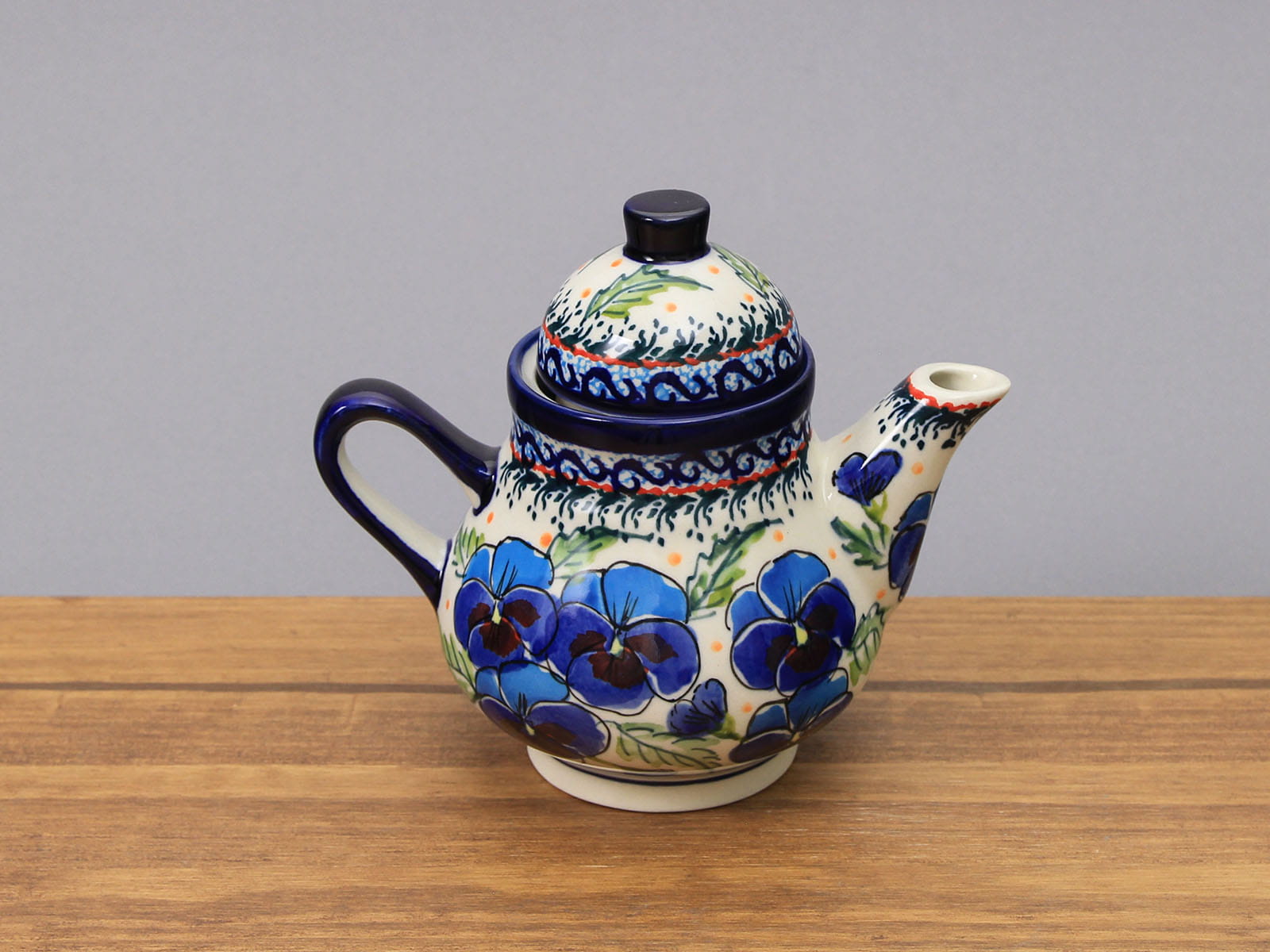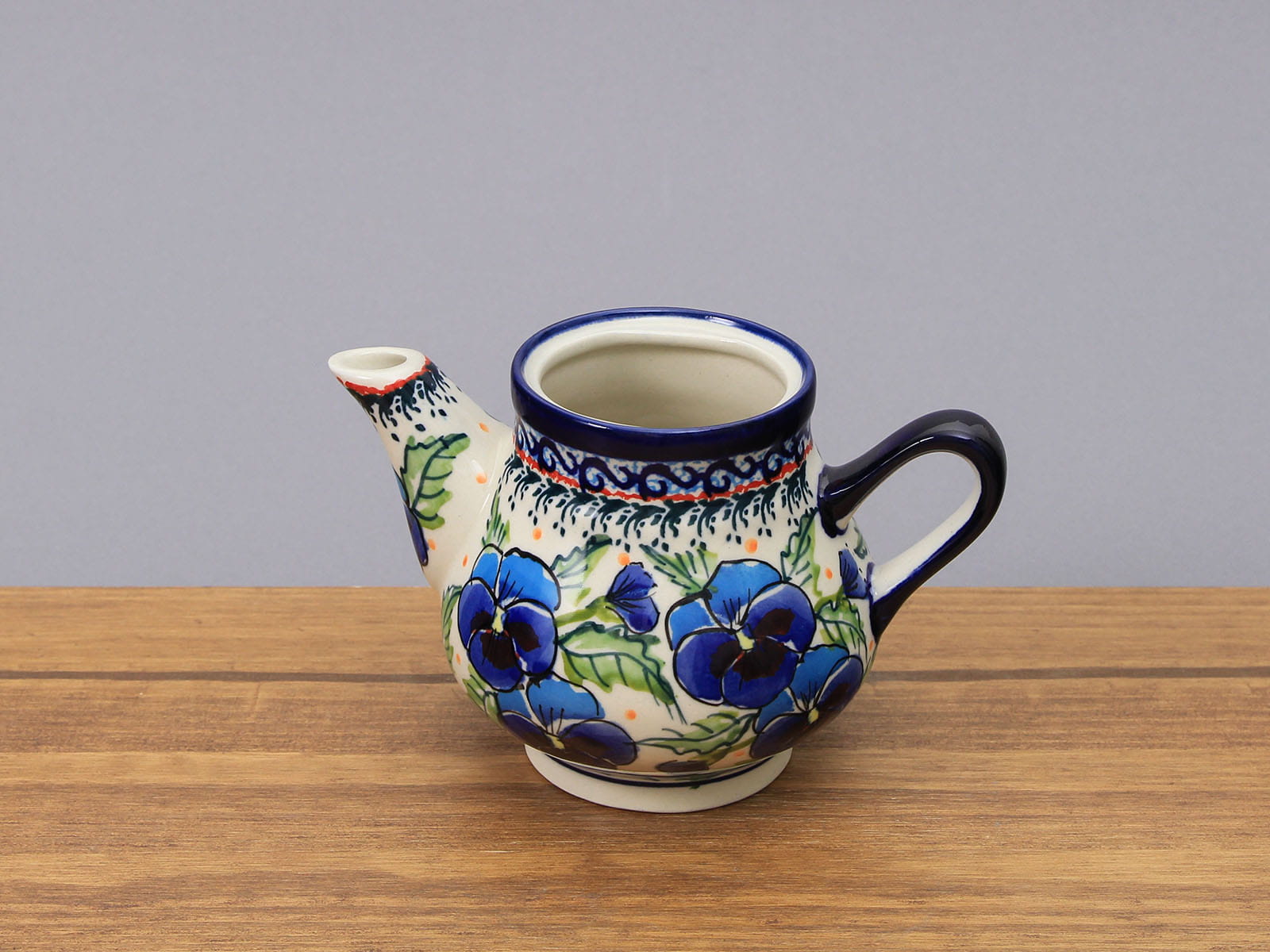 Mały czajnik o pojemności 250 ml, malowany ręcznie. Służy do podawania ciepłych napojów. Dzięki termoizolacyjnym właściwościom ceramiki zawartość dłużej utrzymuje ciepło. Wybierany jako część zestawu kawowego lub zestawu do herbaty. Możliwość łączenia z podgrzewaczem GU1118. Szkliwienie sprawia, że naczynia są bardziej odporne na zabrudzenia, mają niska absorpcję wody i są łatwiejsze w czyszczeniu.