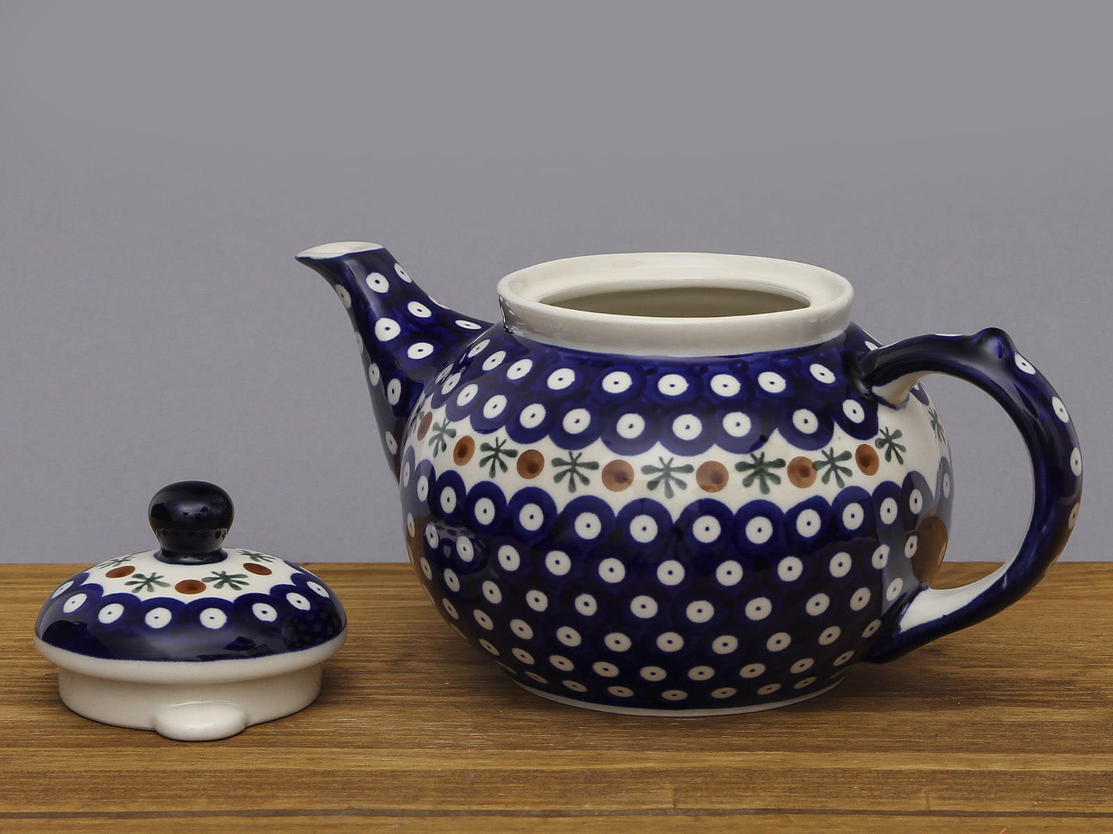 Czajnik o pojemności 1250 ml, malowany ręcznie. Służy do podawania ciepłych napojów. Dzięki termoizolacyjnym właściwościom ceramiki zawartość dłużej utrzymuje ciepło. Wybierany jako część zestawu kawowego lub zestawu do herbaty. Możliwość łączenia z podgrzewaczem GU1067. Szkliwienie sprawia, że naczynia są bardziej odporne na zabrudzenia, mają niska absorpcję wody i są łatwiejsze w czyszczeniu.