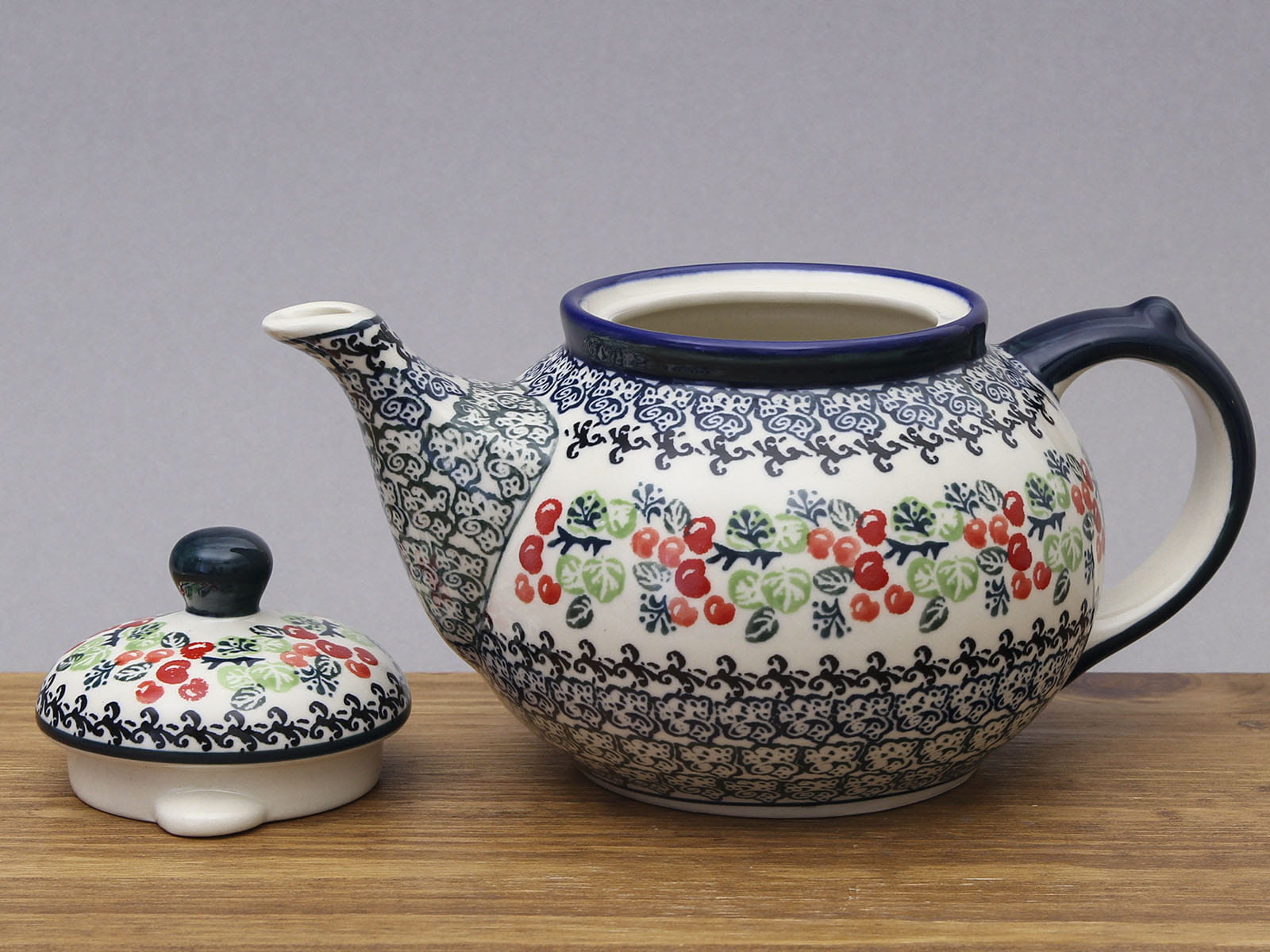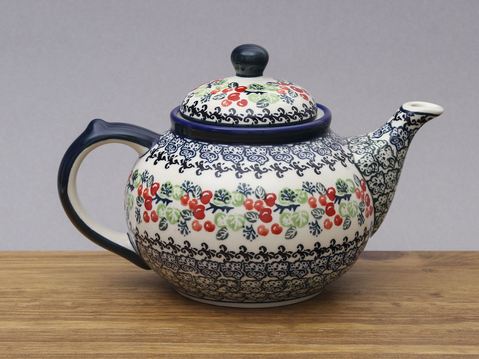 Czajnik o pojemności 1250 ml, malowany ręcznie. Służy do podawania ciepłych napojów. Dzięki termoizolacyjnym właściwościom ceramiki zawartość dłużej utrzymuje ciepło. Wybierany jako część zestawu kawowego lub zestawu do herbaty. Możliwość łączenia z podgrzewaczem GU1067. Szkliwienie sprawia, że naczynia są bardziej odporne na zabrudzenia, mają niska absorpcję wody i są łatwiejsze w czyszczeniu.
