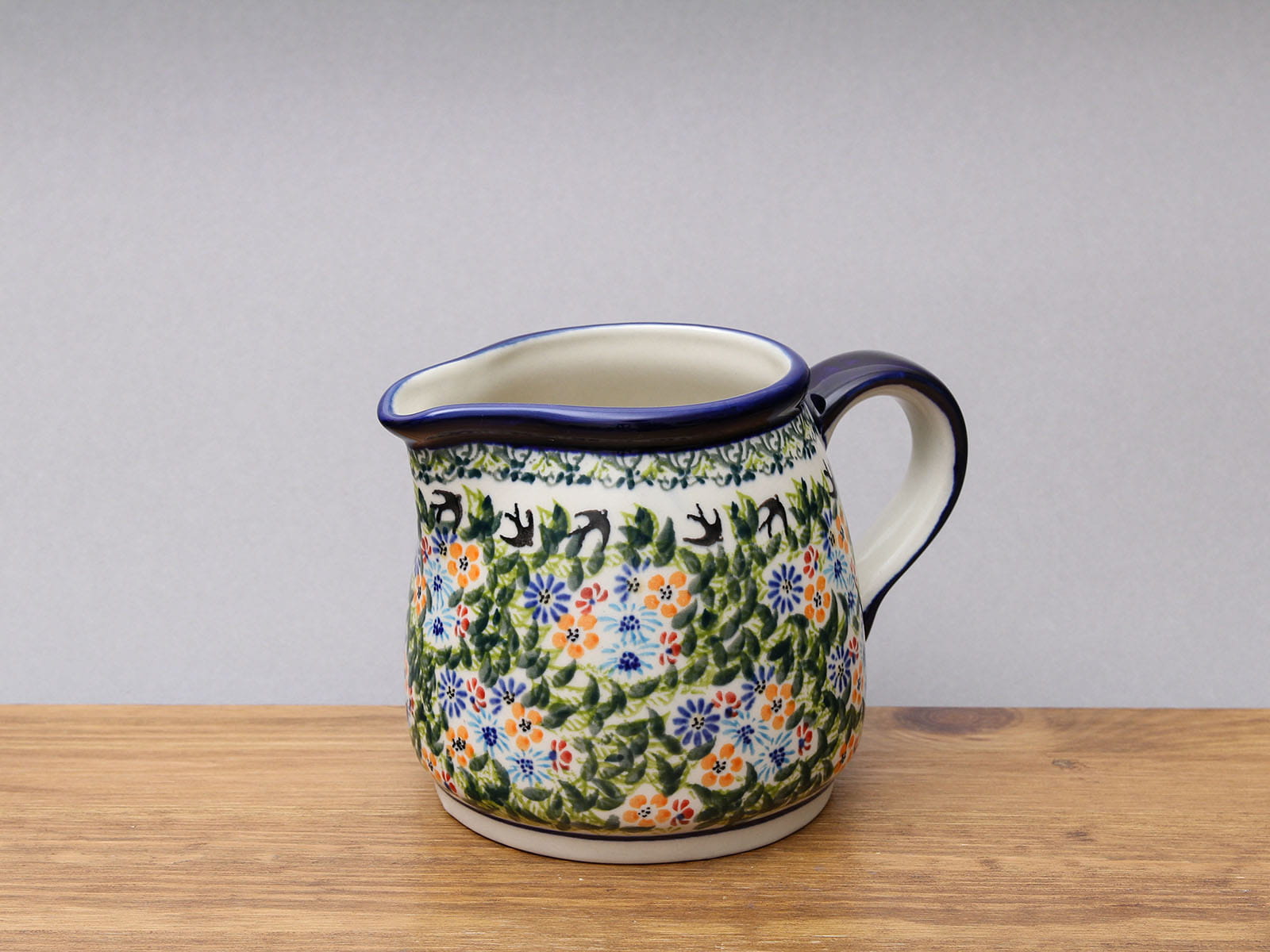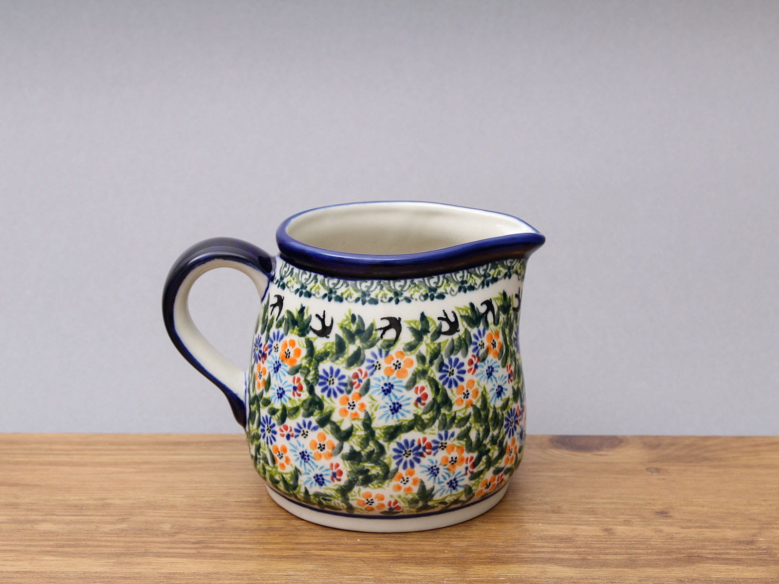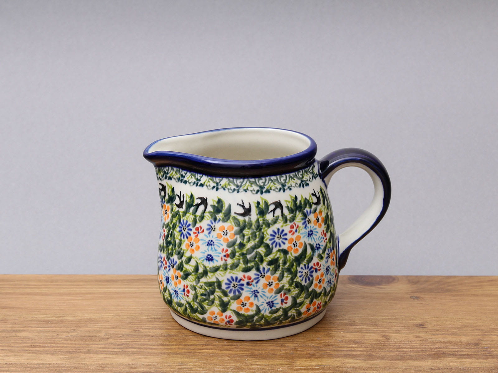 Dzbanek o pojemności i 1200 ml, malowany ręcznie. Wyprofilowany dzióbek usprawnia nalewanie oraz zapobiega spływaniu płynu po zewnętrznej ściance naczynia. Praktyczny uchwyt ułatwia użycie. Oprócz swojej podstawowej funkcji może pełnić rolę wazonu lub dekoracyjną. Szkliwienie sprawia, że naczynia są bardziej odporne na zabrudzenia, mają niska absorpcję wody i są łatwiejsze w czyszczeniu.
