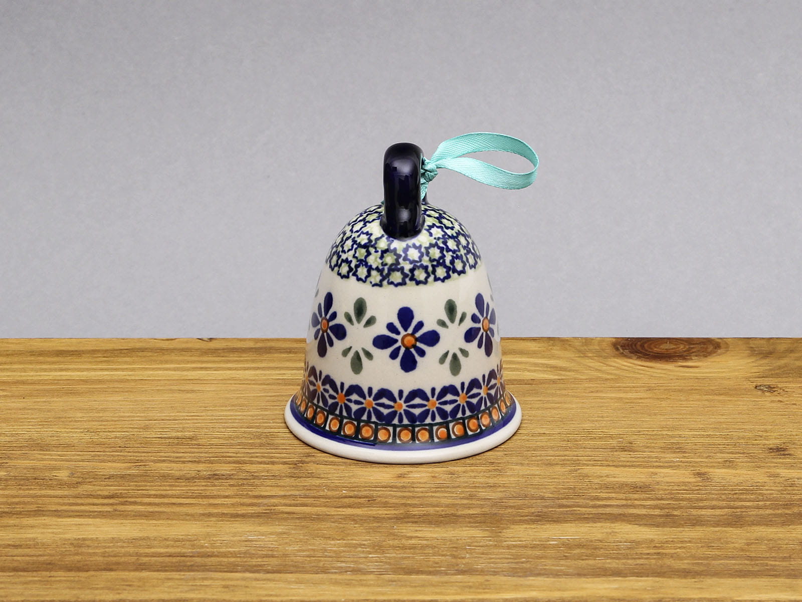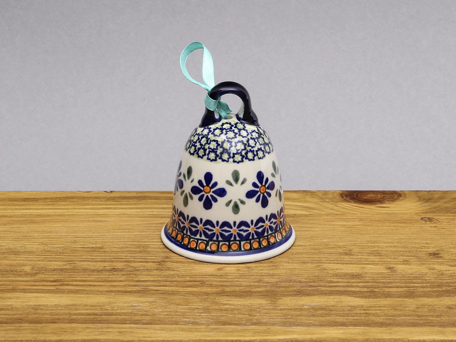 Dzwonek o wysokości 10 cm, malowany ręcznie. Serce dzwonka przywiązane jest wstążką, która tworzy dekoracyjną kokardę na uchwycie. Dzięki uchwytowi dzwonek może być wykorzystany jako ozdoba choinkowa czy element stroika. Równie dobrze prezentuje się jako ozdoba stołu. Szkliwienie sprawia, że naczynia są bardziej odporne na zabrudzenia, mają niską absorpcję wody i są łatwiejsze w czyszczeniu.