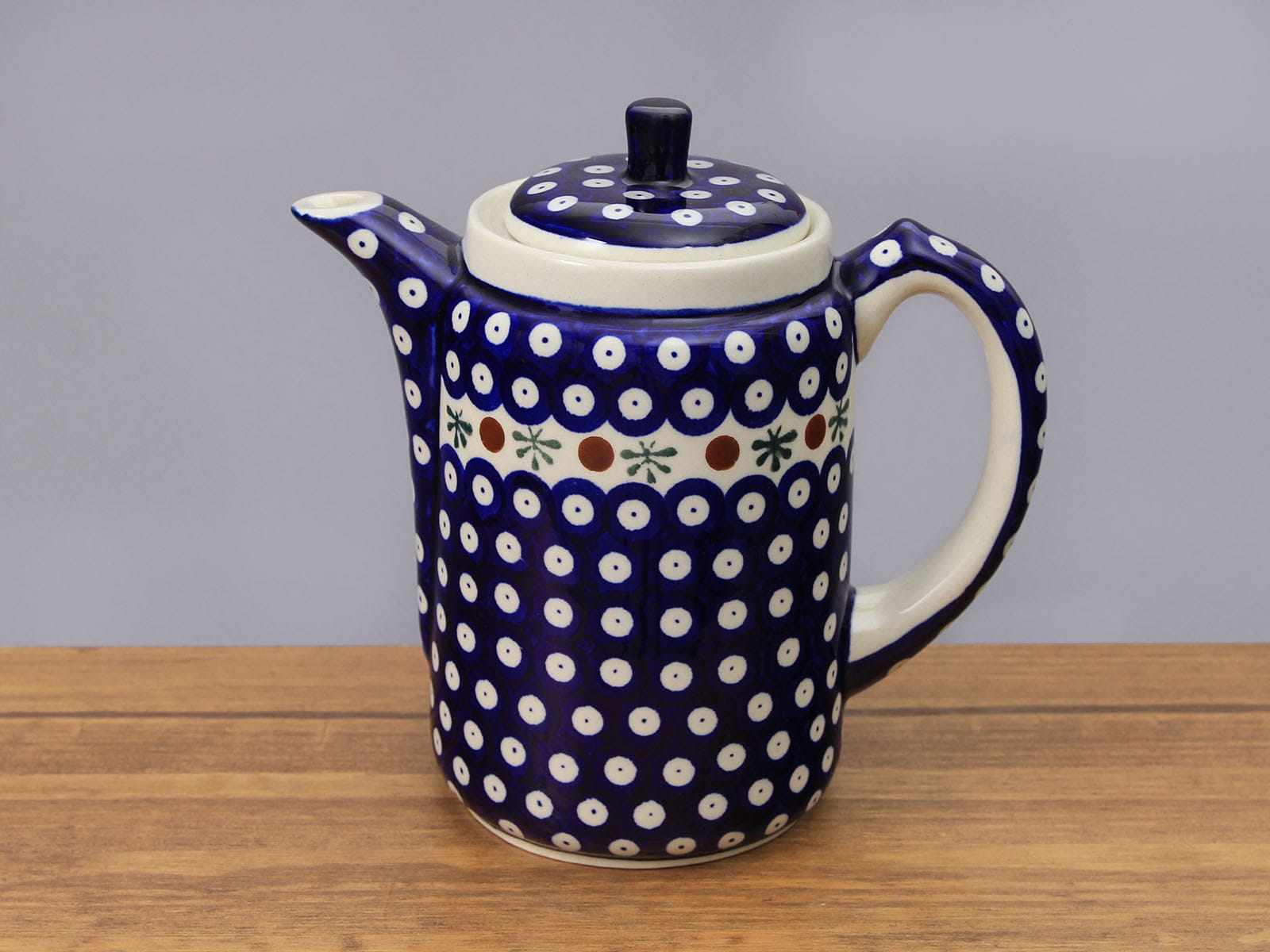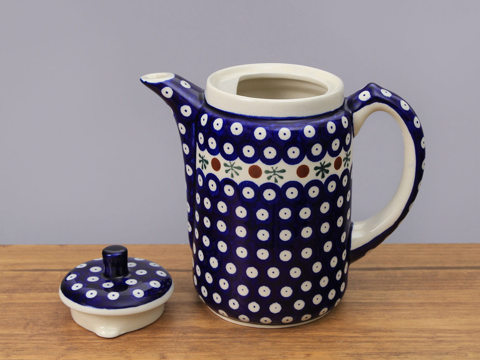 Czajnik o pojemności 1250 ml, malowany ręcznie. Służy do podawania ciepłych napojów. Dzięki termoizolacyjnym właściwościom ceramiki zawartość dłużej utrzymuje ciepło. Wybierany jako część zestawu kawowego lub zestawu do herbaty. Możliwość łączenia z podgrzewaczem GU1067. Szkliwienie sprawia, że naczynia są bardziej odporne na zabrudzenia, mają niska absorpcję wody i są łatwiejsze w czyszczeniu.