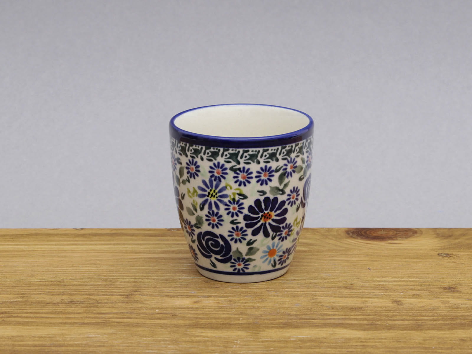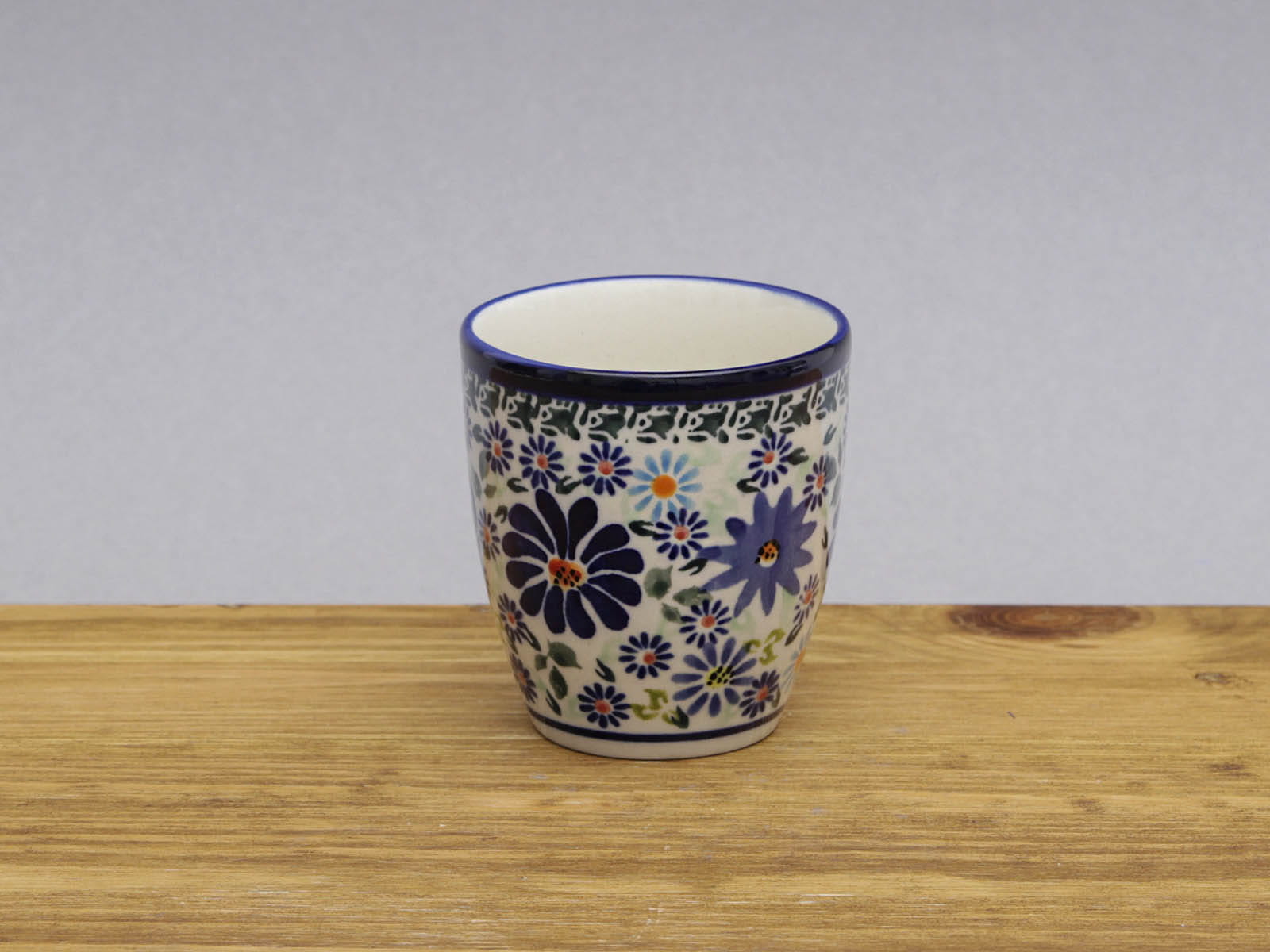 Kubek o pojemności 180 ml, malowany ręcznie. Naczynie do podawania ciepłych i zimnych napojów. Dzięki termoizolacyjnym właściwościom ceramiki zawartość dłużej utrzymuje ciepło. Szkliwienie sprawia, że naczynia są bardziej odporne na zabrudzenia, mają niska absorpcję wody i są łatwiejsze w czyszczeniu.