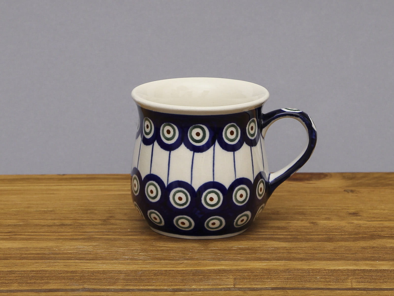 Kubek o pojemności 250 ml, malowany ręcznie. Naczynie do podawania ciepłych i zimnych napojów. Wybierany jako część zestawu śniadaniowego lub samodzielny prezent. Dzięki termoizolacyjnym właściwościom ceramiki zawartość dłużej utrzymuje ciepło. Szkliwienie sprawia, że naczynia są bardziej odporne na zabrudzenia, mają niska absorpcję wody i są łatwiejsze w czyszczeniu.