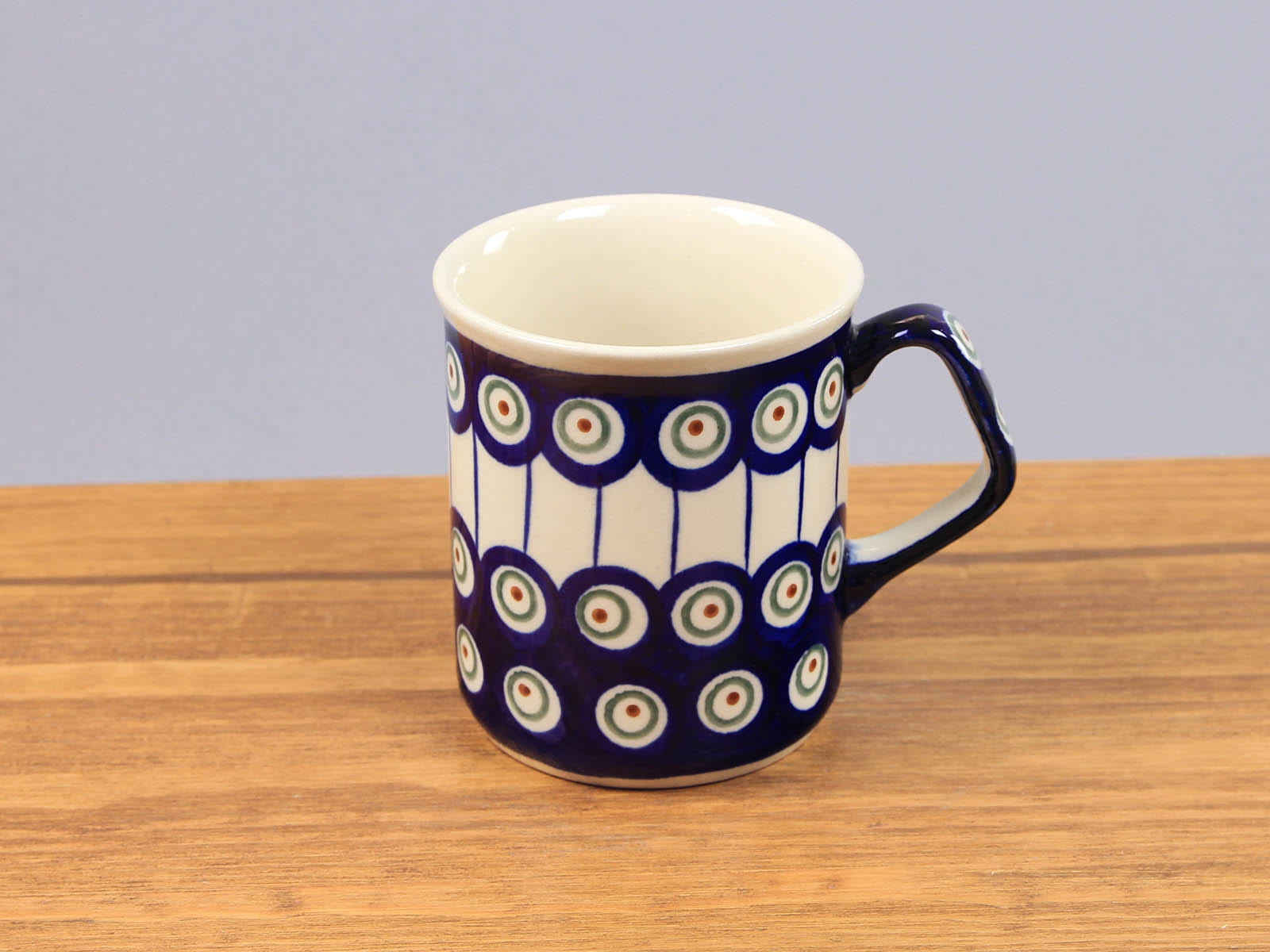 Kubek o pojemności 250 ml, malowany ręcznie. Naczynie do podawania ciepłych i zimnych napojów. Wybierany jako część zestawu śniadaniowego lub samodzielny prezent. Dzięki termoizolacyjnym właściwościom ceramiki zawartość dłużej utrzymuje ciepło. Szkliwienie sprawia, że naczynia są bardziej odporne na zabrudzenia, mają niska absorpcję wody i są łatwiejsze w czyszczeniu.