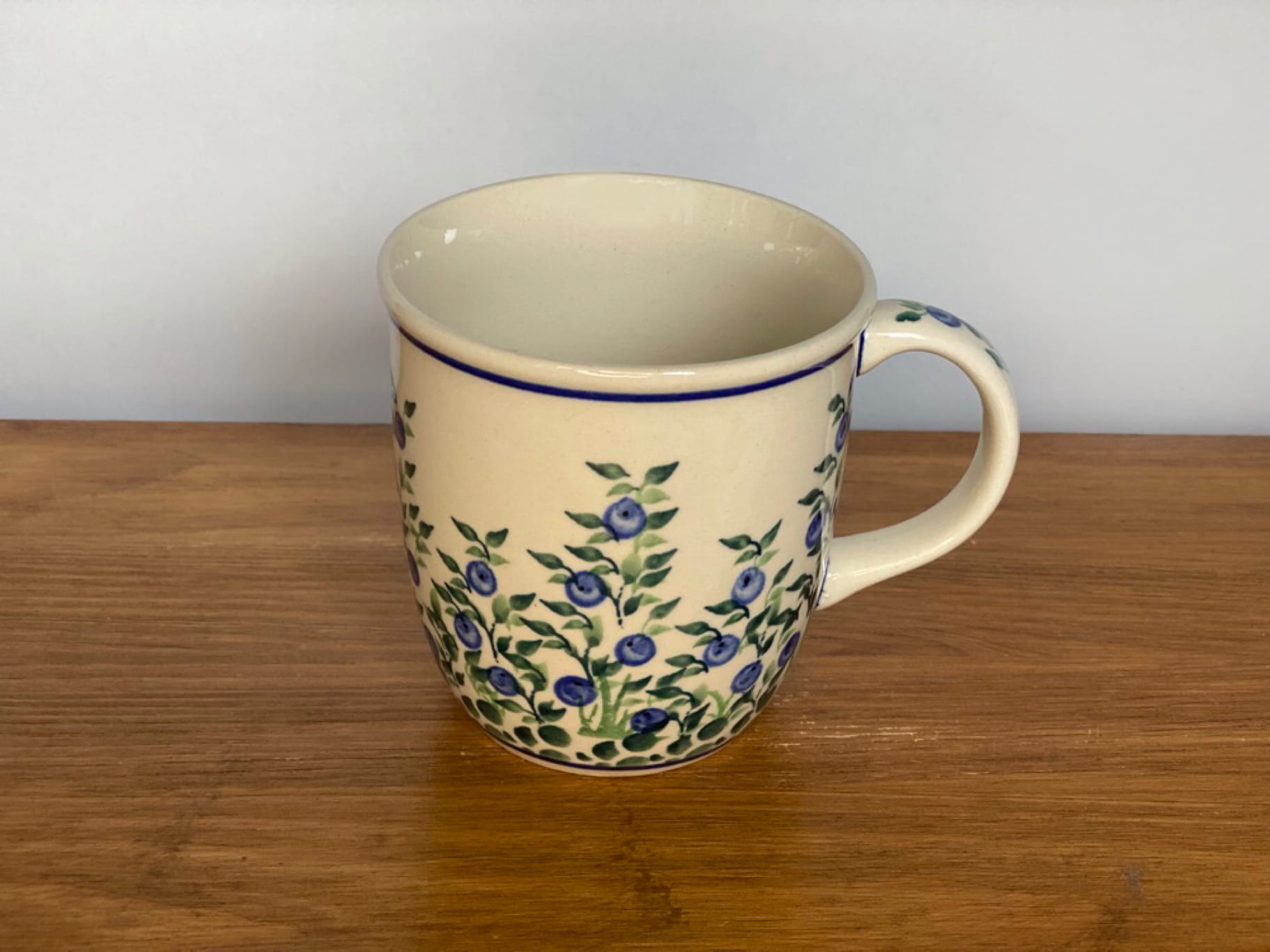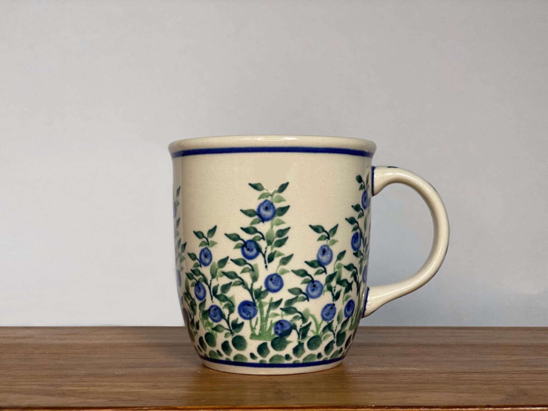 Kubek o pojemności 350 ml, malowany ręcznie. Naczynie do podawania ciepłych i zimnych napojów. Wybierany jako część zestawu śniadaniowego lub samodzielny prezent. Dzięki termoizolacyjnym właściwościom ceramiki zawartość dłużej utrzymuje ciepło. Szkliwienie sprawia, że naczynia są bardziej odporne na zabrudzenia, mają niska absorpcję wody i są łatwiejsze w czyszczeniu.