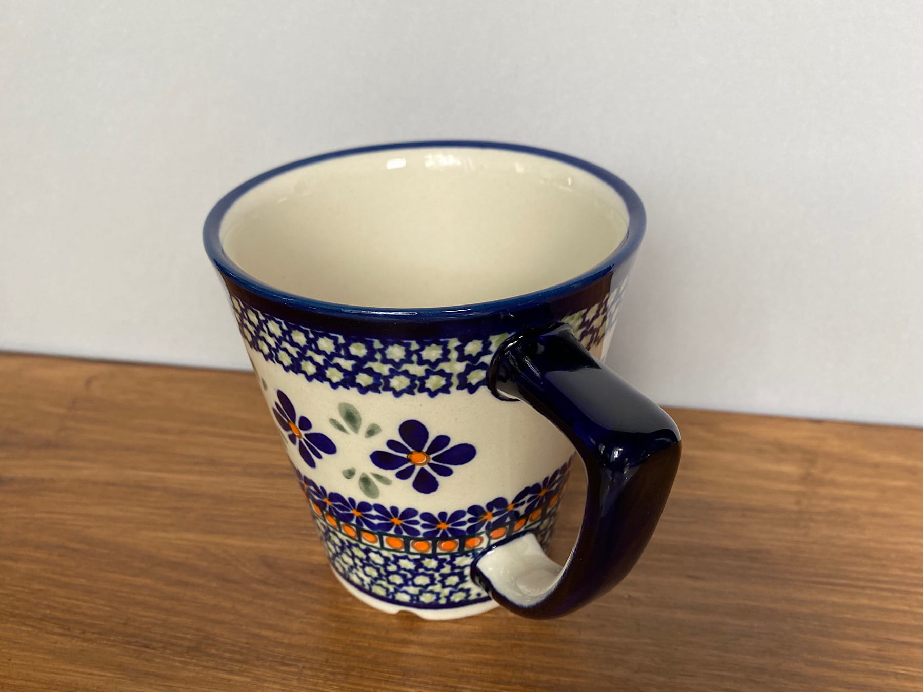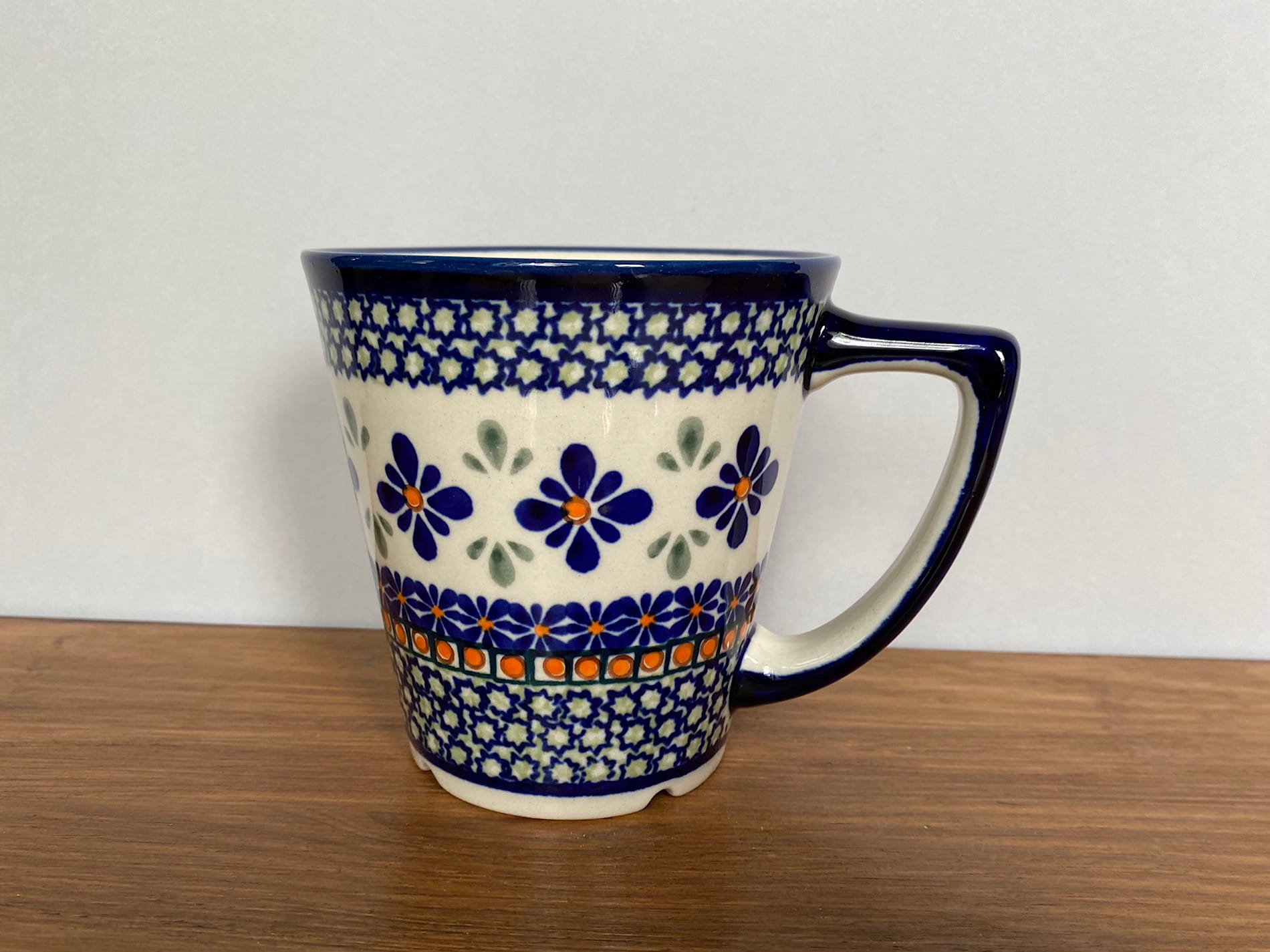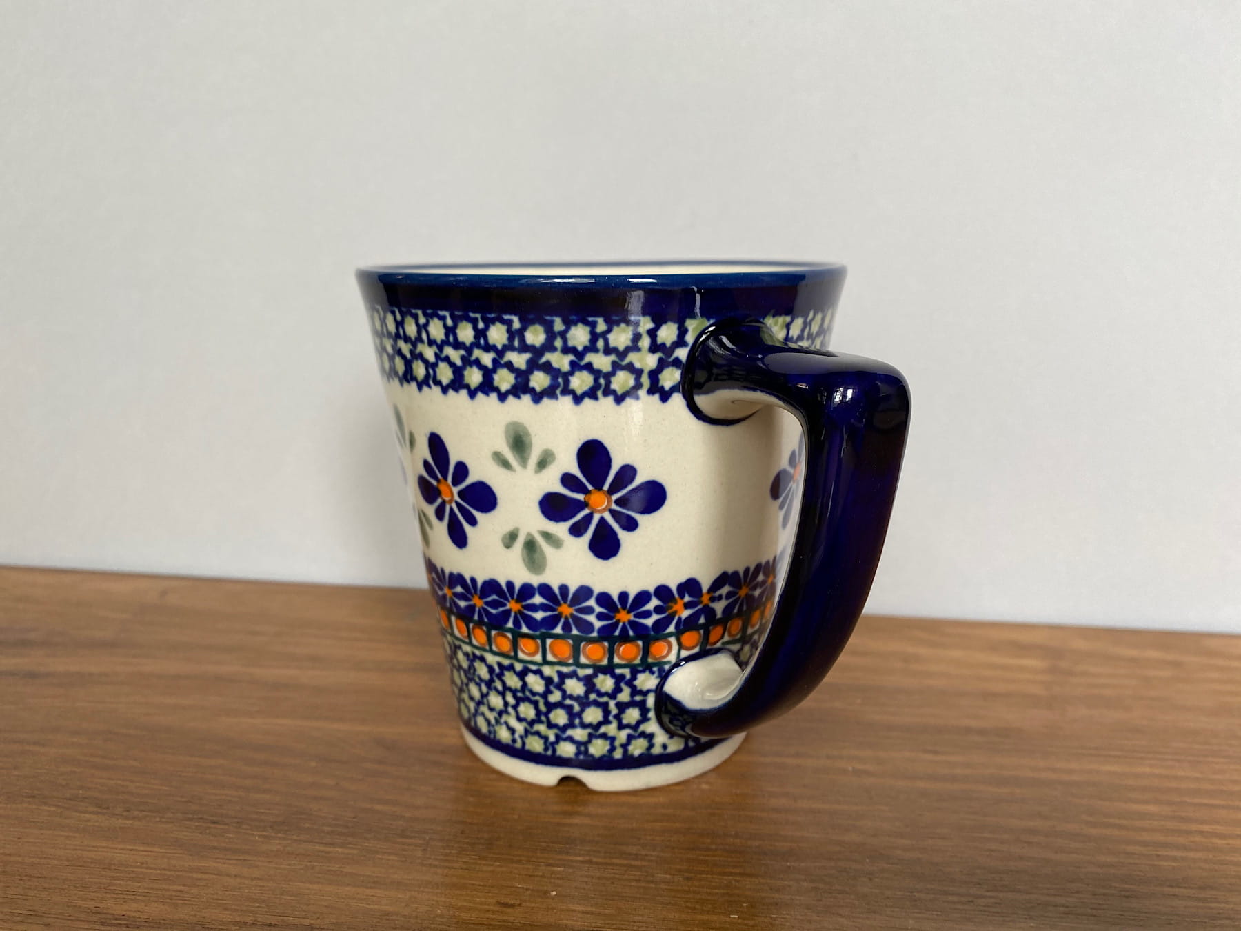 Kubek o pojemności 350 ml, malowany ręcznie. Naczynie do podawania ciepłych i zimnych napojów. Wybierany jako część zestawu śniadaniowego lub samodzielny prezent. Dzięki termoizolacyjnym właściwościom ceramiki zawartość dłużej utrzymuje ciepło. Szkliwienie sprawia, że naczynia są bardziej odporne na zabrudzenia, mają niska absorpcję wody i są łatwiejsze w czyszczeniu.