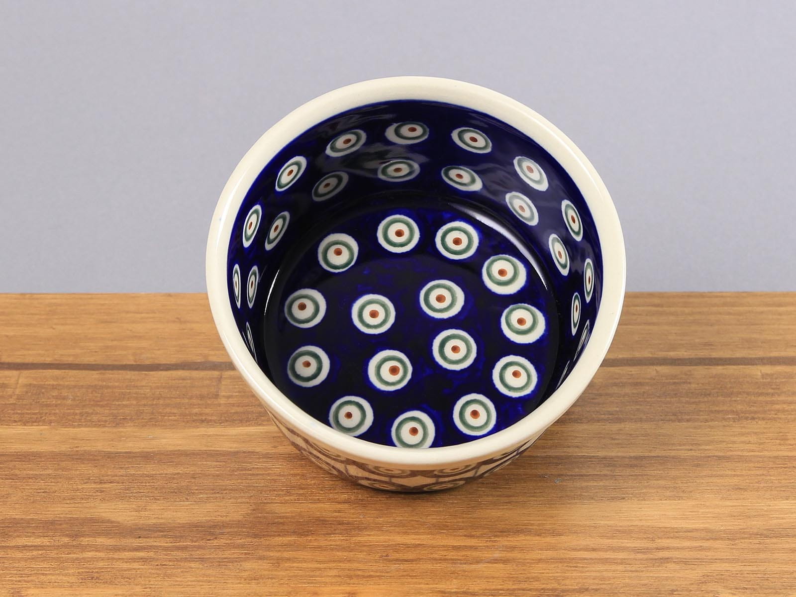 Okrągła miska z prostymi ściankami o pojemności 400 ml. Sprawdzi się do podawania np. dipów, słodkich i słonych przekąsek. Szkliwienie sprawia, że naczynia są bardziej odporne na zabrudzenia, mają niska absorpcję wody i są łatwiejsze w czyszczeniu.