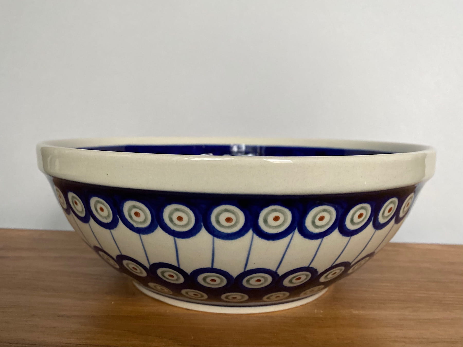 Okrągła miska z prostymi ściankami o pojemności 2000 ml. Sprawdzi się do podawania np. sałatek, ziemniaków, bigosu. Szkliwienie sprawia, że naczynia są bardziej odporne na zabrudzenia, mają niska absorpcję wody i są łatwiejsze w czyszczeniu.