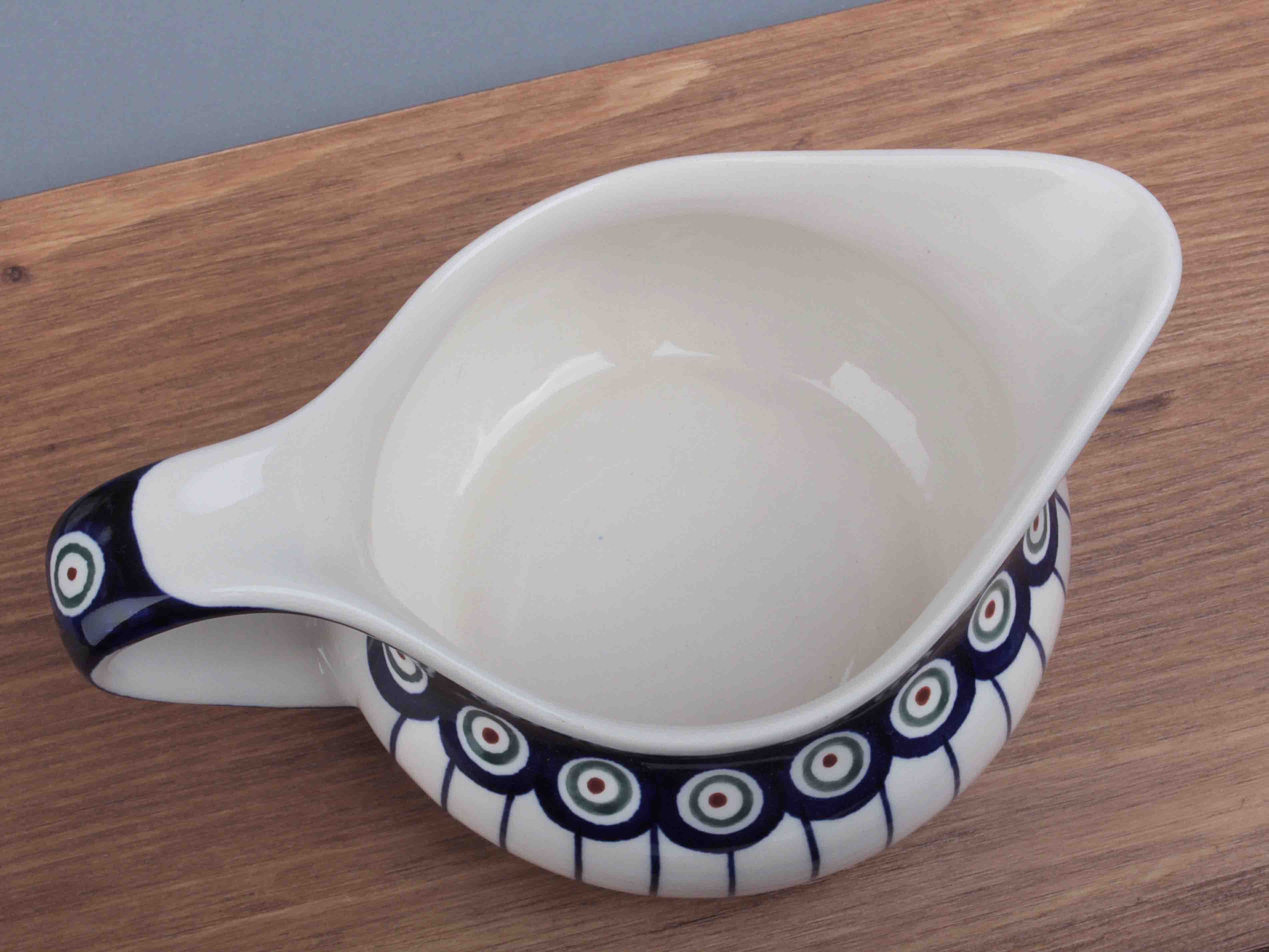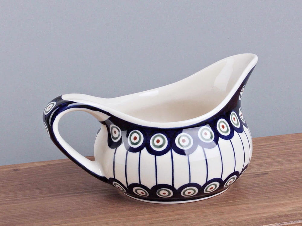 Sosjerka o pojemności 450 ml, malowana ręcznie. Wyprofilowany dzióbek usprawnia nalewanie oraz zapobiega spływaniu płynu po zewnętrznej ściance naczynia. Praktyczny uchwyt ułatwia użycie. Wybierana przy kompletowaniu zestawów obiadowych. Szkliwienie sprawia, że naczynia są bardziej odporne na zabrudzenia, mają niska absorpcję wody i są łatwiejsze w czyszczeniu.