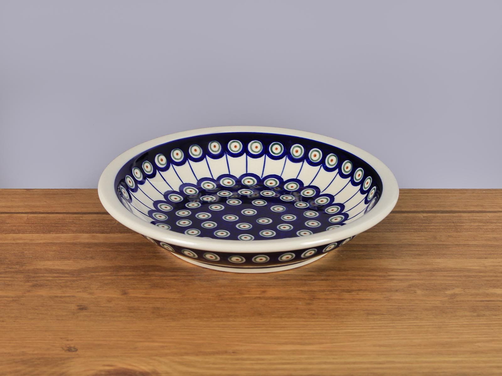 Głęboki talerz o okrągłym kształcie, malowany ręcznie. Odpowiedni do zup, utrzymujący ciepło dzięki termoizolacyjnych właściwościach ceramiki. Stosowany również jako miska do spaghetti. Szkliwienie sprawia, że naczynia są bardziej odporne na zabrudzenia, mają niska absorpcję wody i są łatwiejsze w czyszczeniu.